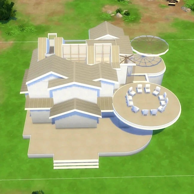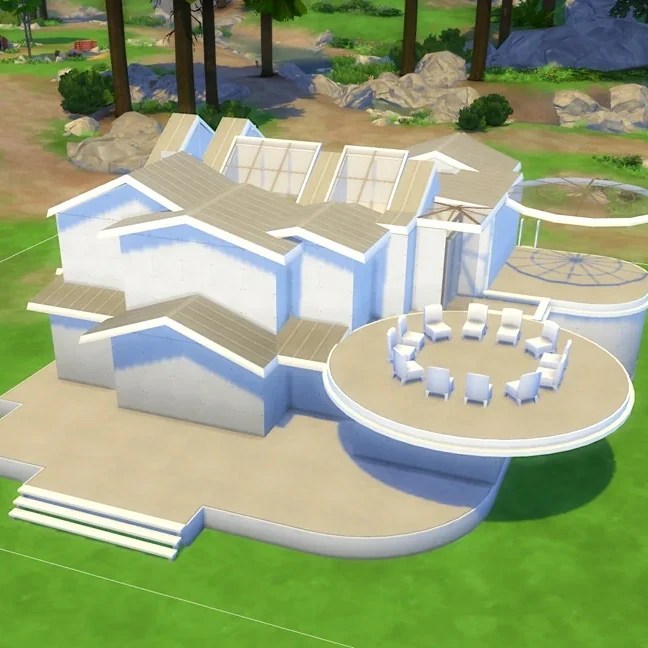 Base game modern home: This thoughtfully designed modern family home features a striking black-and-white aesthetic. It has innumerable terraces that invite you to step outside and enjoy the beautiful outdoors. This home is a stylish place for any occasion. Enjoy hobbies like gardening and reading, or relax in the sun. ↓
